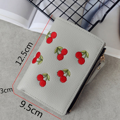 PU Leather Cherry Embroidery Coin Purse Card Holders(Dark pink)