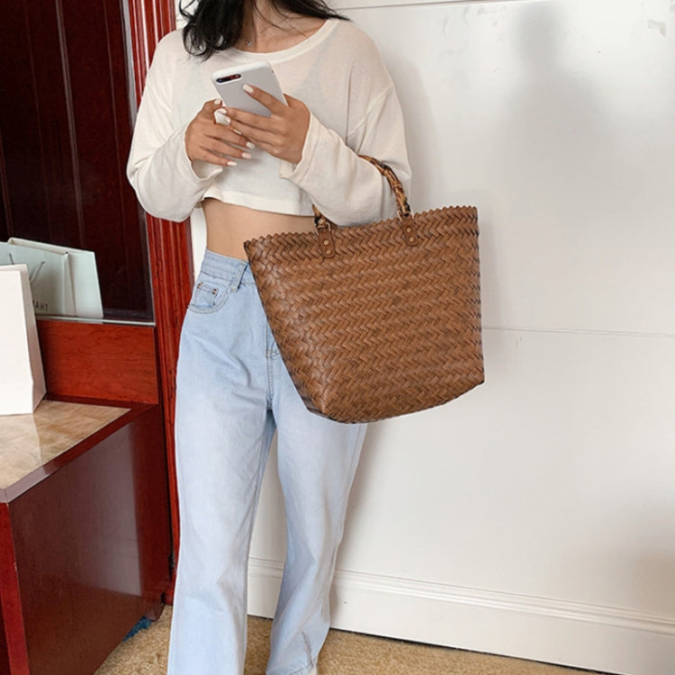 Retro Large-Capacity Bamboo Portable Straw Beach Bag(Brown)