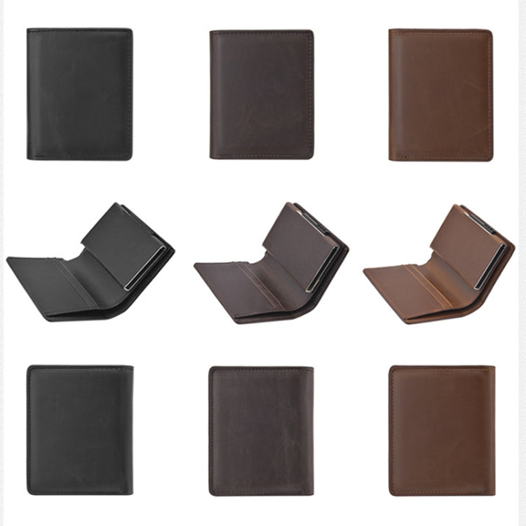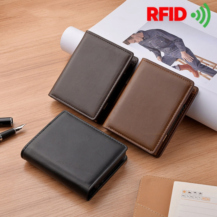 RFID Anti-Theft Short Wallet Automatic Pop-Up Aluminum Alloy Antimagnetic Card Holder(Brown)