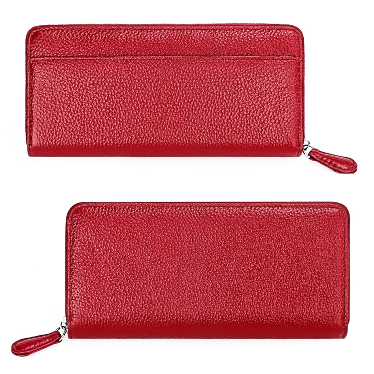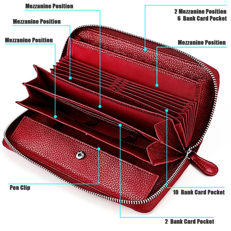RFID Lychee Texture Fashion Organ Clutch Ladies Zipper Long Change Bag(Red Wine)