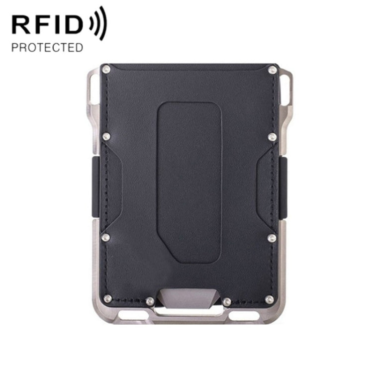 RFID Metal Anti-Theft Credit Card Holder(Silver Metal + Black Skin)