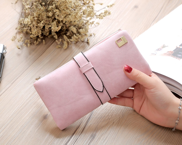Solid Drawstring Nubuck Leather Zipper Long Women Wallet Phone Bag Purse Card Holder(Pink)