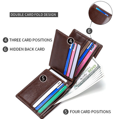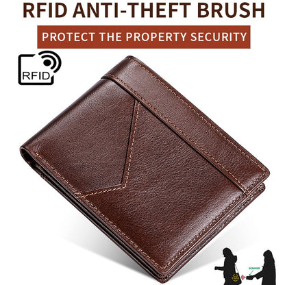Stitching Leather Men Wallet RFID Anti-Theft Wallet(Brown)