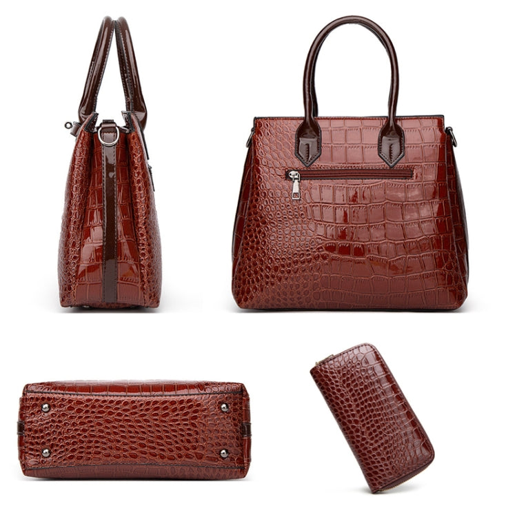 T5056 2 in 1 Crocodile Pattern Patent Leather Diagonal Handbags Large-Capacity Single-Shoulder Bag(Wine Red)