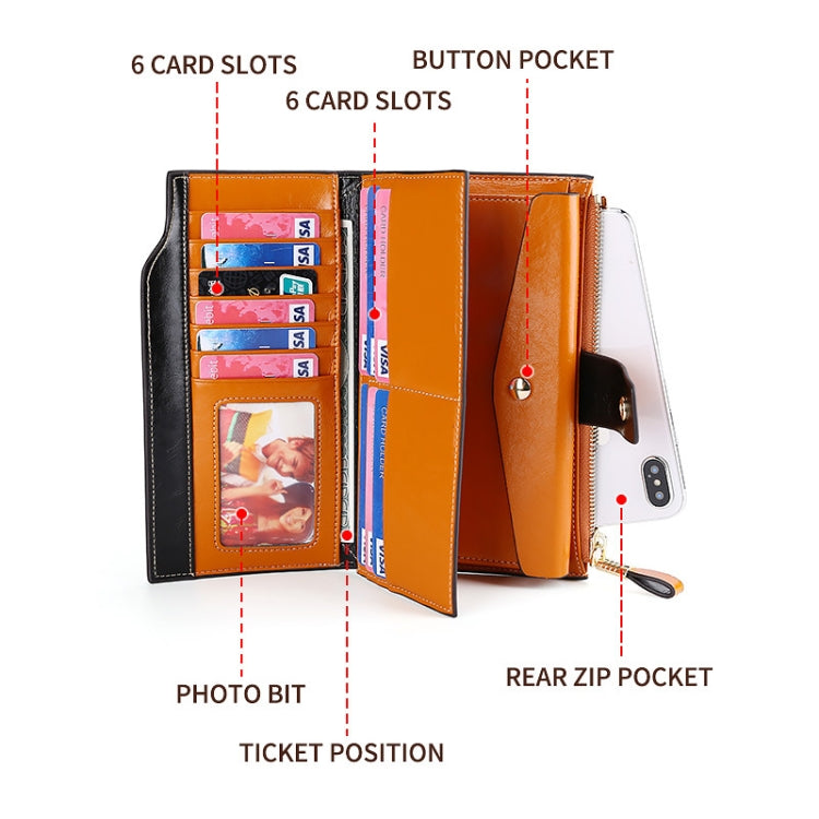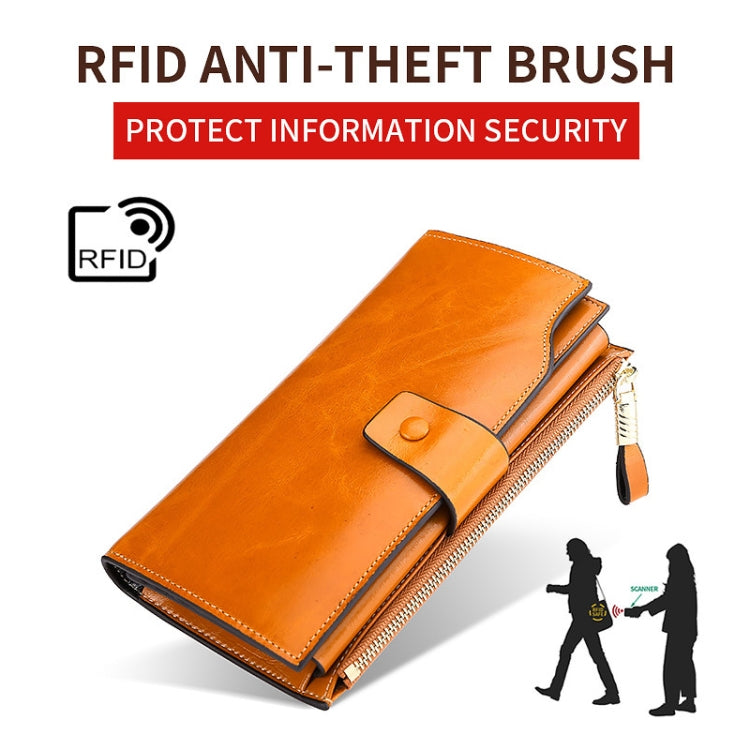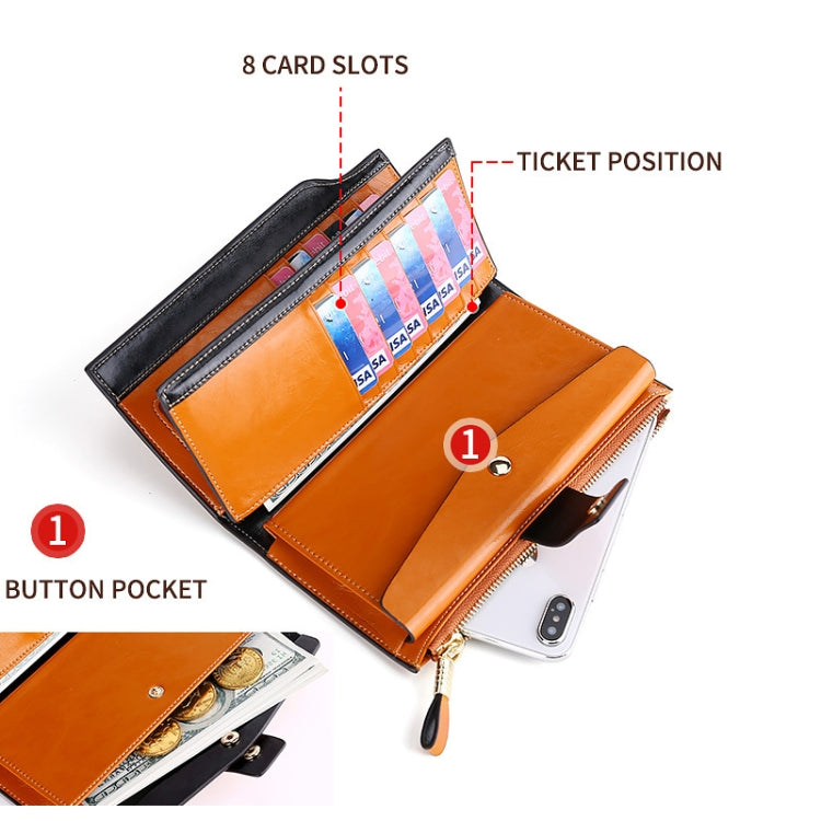 TP-192 First Layer Of Cowhide Long Type Oil Wax Leather Ladies Clutch Retro Wallet RFID Anti-Theft Ladies Wallet(Royal Blue)