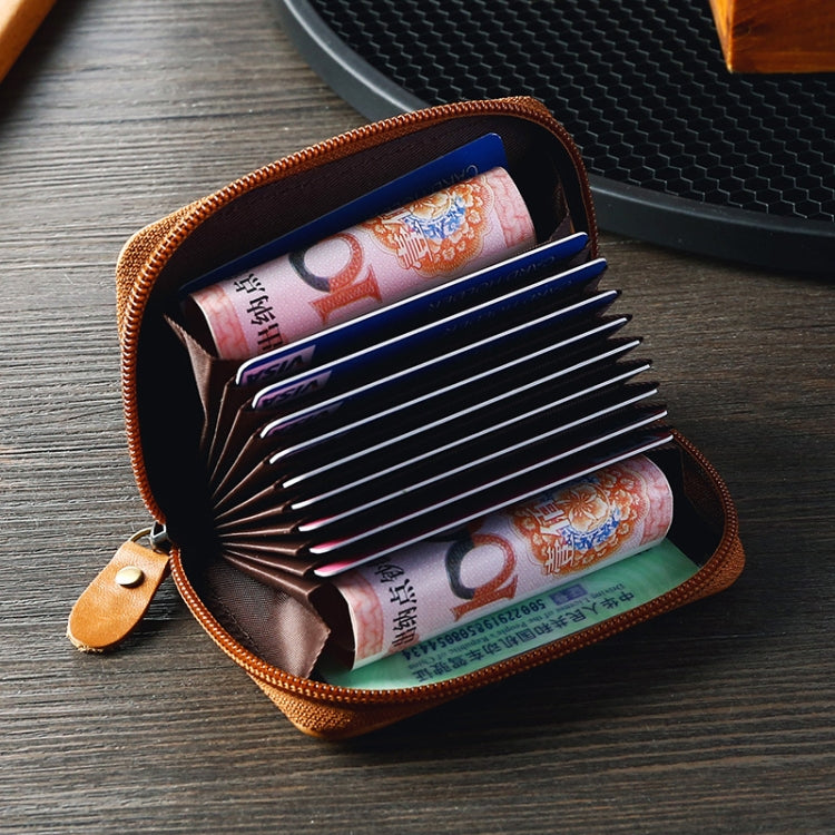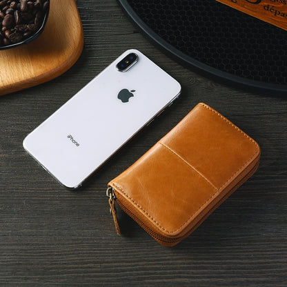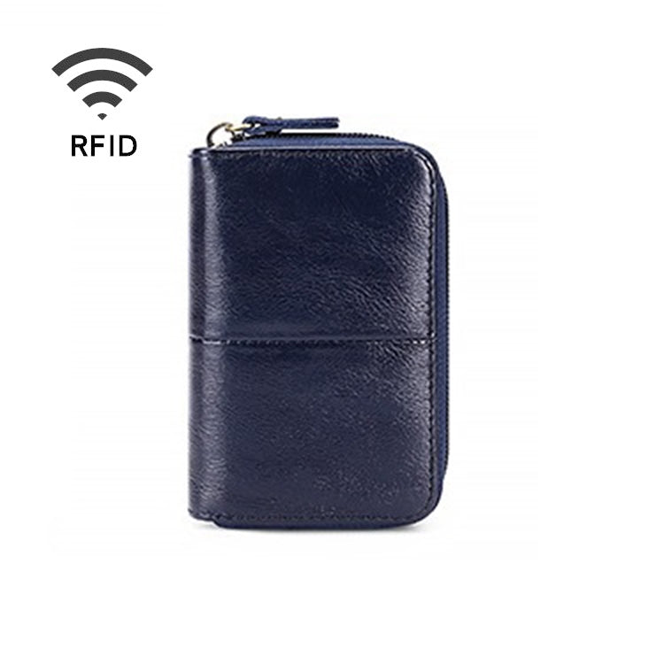 TP-8290 RFID Oil Wax Leather Zipper Change Purse Organ Card Holder(Blue)
