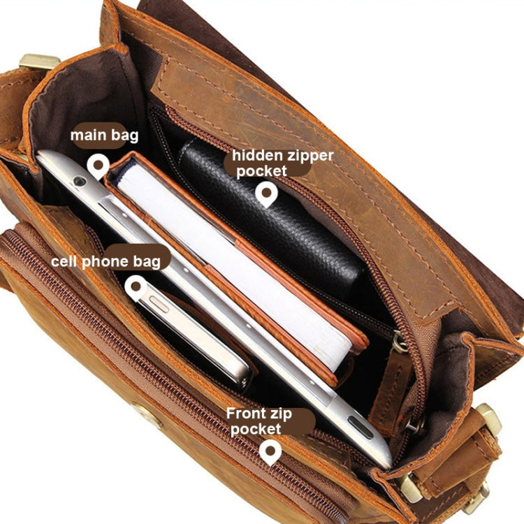 Vintage Crazy Horse Leather Men Shoulder Bag Messenger Bag(Brown)