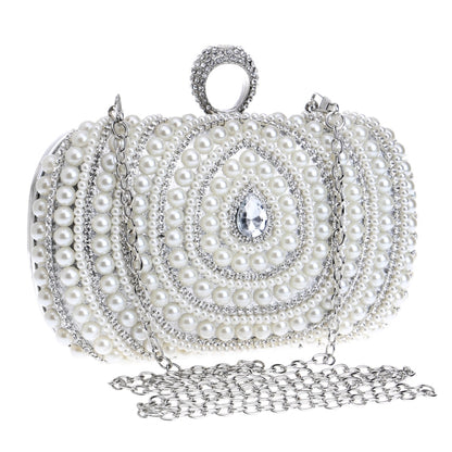 Women Fashion Banquet Party Pearl Handbag(Silver)