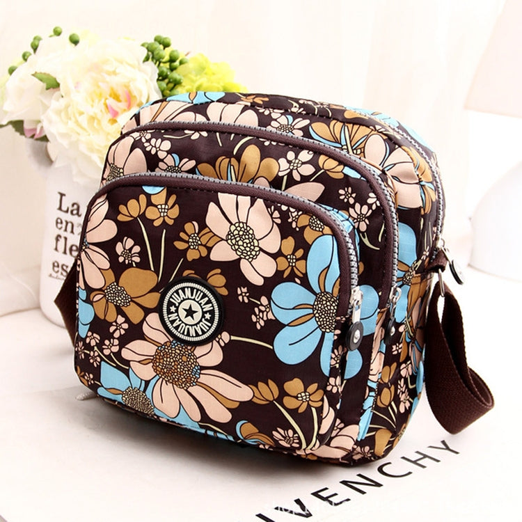 Women Shoulder Bag Waterproof Nylon Handbag Multilayer Crossbody Bag(Blue flower)