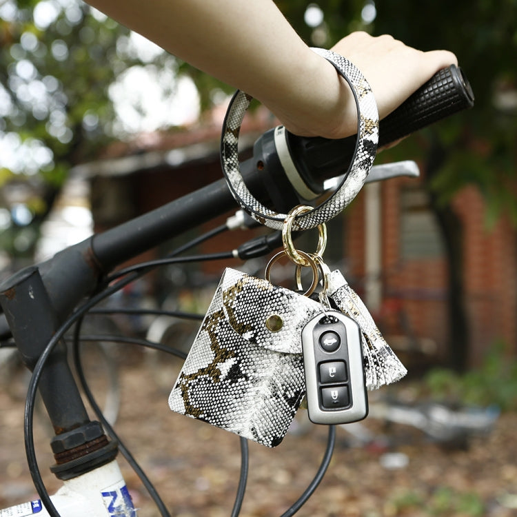 Wrist Keychain Coin Purse PU Leather Snake Print Bracelet Card Case(Green)